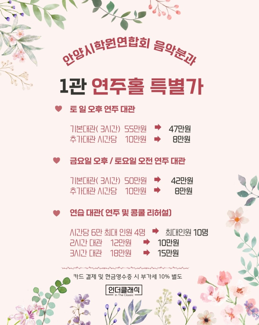 - 1관 연주홀 특별 할인 (토요일 및 금요일 대관 시)